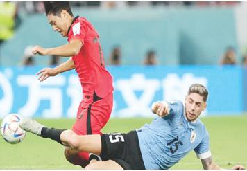 desarrolló su primer duelo contra Corea del Sur, sin fútbol y con un par de ocasiones: un cabezazo al poste de Godín o de un tiro a última hora de Fede Valverde a la escuadra. Lo único. Demasiado poco. Porque Corea del Sur puso en evidencia un buen rato a Uruguay, desnortada, sin so lución ni recursos al partido que le sobrevino de repente, a un adversario sin comple jos, que entiende que todo lo que sea ir más allá de la fase de grupos será superar cualquier límite imaginable para él, que dispuso de Son Heung Min, enmascarado y un fenomenal futbolista, y de un grupo entusiasmado y dinámico de jugadores en torno a una idea clara.