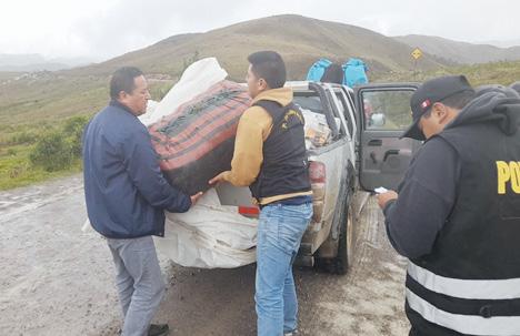 La intervención policial se realizó este último fin de semana Al respecto en las inmediaciones de la carretera que conduce del Centro Poblado Ramoscucho a Bambamarca. Los agentes policiales de inteligencia en coordinación con los agentes policiales de puesto de auxilio rápido de Pallan, procedieron a la incautación de un aproximado de 250 kg de hoja de coca que estaba siendo trasladado en el