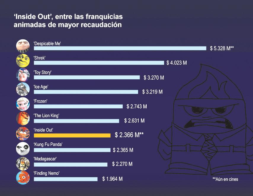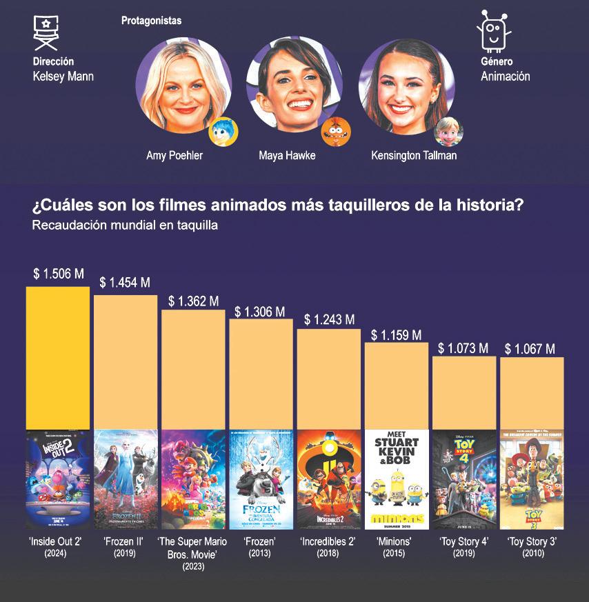 “Inside Out 2”, de Pixar, se convirtió en la película animada más taquillera de la historia al superar los 1.500 millones de dólares en recaudación en todo el mundo, dejando en segundo lugar a “Frozen II”.