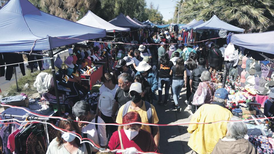POR PRIMERA VEZ TRAS LA PANDEMIA El comercio ambulante fue uno de los problemas que se generó en la tradicional fiesta. Bailes chino en honor a “La Chinita” de Andacollo. Peregrinos contemplando a la Virgen de Andacollo tras misa solemne. LAUTARO CARMONA LAUTARO CARMONAOPINIÓN