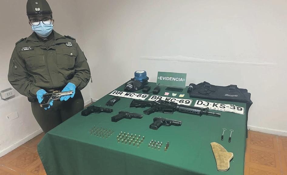 La rápida reacción de carabineros permitió detener al sujeto e incautar cuatro pistolas de fogueo, tres de las cuales estaban adaptadas para el disparo; una réplica de fusil; 69 municiones de distintos calibres; 3 bolsas de tusi y diversos elementos para cometer delitos, entre ellos una baliza azul, 3 patentes de vehículos, una máscara de plástico y un chaleco anticorte.