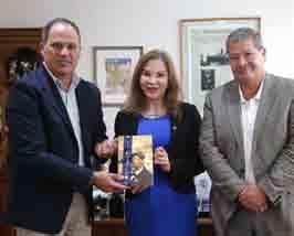 En la imagen, la rectora de la Universidad de La Serena, Luperfina Rojas, junto al presidente de la Junta Directiva de la ULS, Ernesto Velasco, entrega un reconocimiento a Francisco Puga, director de Diario El Día, por los 80 años del medio. Fue una buena oportunidad para definir los lineamientos del convenio entre la casa de estudios y la empresa para el año 2024, donde el trabajo conjunto será clave para mejorar la experiencia de los estudiantes de la carrera de Periodismo.