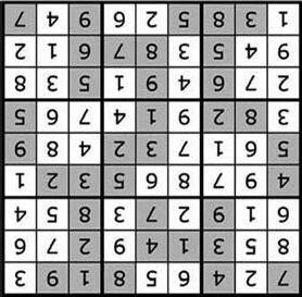 Hay que emplear el razonamiento lógico y la observación, sin recurrir a complicados cálculos aritméticos. Se debe rellenar cada una de las 9 cajas con series de 1 al 9, sin repetir números dentro de ellas. Tampoco pueden repetirse estos números en las filas y las columnas.