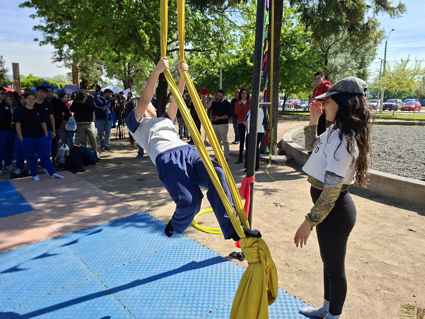 - Las juventudes presentes pudieron disfrutar de una entretenida jornada donde se realizaron talleres de tela circense, risoterapia y malabarismo.