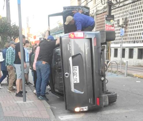 TRES LESIONADOS EN COLISIÓN Y VOLCAMIENTO DE VEHÍCULO EN SECTOR PLAZA DE LINARES