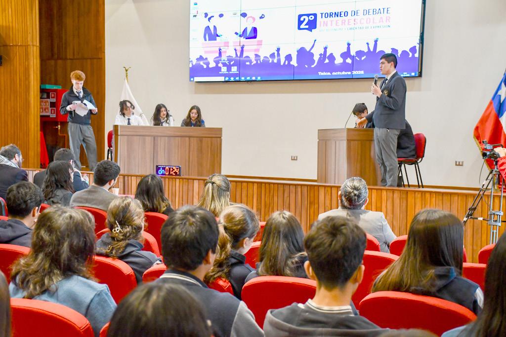 ca, Nicole Cancino, destacó que este tipo de actividades reflejan el trabajo colaborativo entre la universidad y la comunidad, “instancias como este torneo muestran lo que se puede lograr cuando se trabaja en base a la bidireccionalidad y la co-creación. Hablar de libertad de expresión es también hablar de responsabilidad, y ver a jóvenes debatiendo con respeto y argumentos nos motiva a seguir generando espacios de diálogo y participación”.
