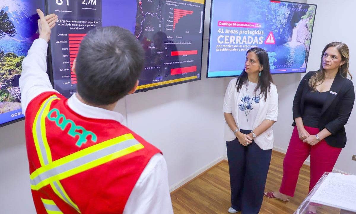 En el contexto de las elecciones presidenciales y parlamentarias que se realizarán este domingo 16 de noviembre en todo el país, y considerando el incremento del desplazamiento de personas, la ministra de Agricultura, Ignacia Fernández, junto a la directora nacional de SENAPRED, Alicia Cebrián; y al director ejecutivo de CONAF, Rodrigo Illesca, anunciaron el cierre preventivo de 41 áreas protegidas del Siste- ma Nacional de Áreas Silvestres del Estado (SNASPE). La medida busca reducir el riesgo de ocurrencia de incendios forestales durante este fin de semana.
