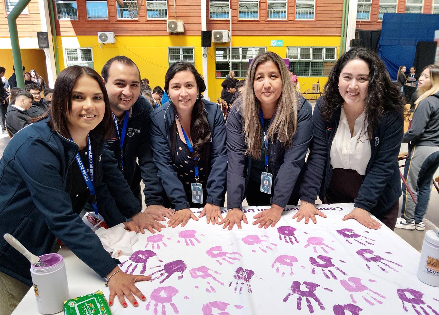 La autoridad destacó también lo que sucedió con la creación de un pendón simbólico, en donde las y los estudiantes del liceo, estamparon sus manos como gesto de compromiso bajo el lema “Estas Manos No Hacen Daño”. “Nos alegra ver a las y los jóvenes su compromiso con el respeto, la empatía y la No Violencia en las relaciones de pololeo”, señaló.