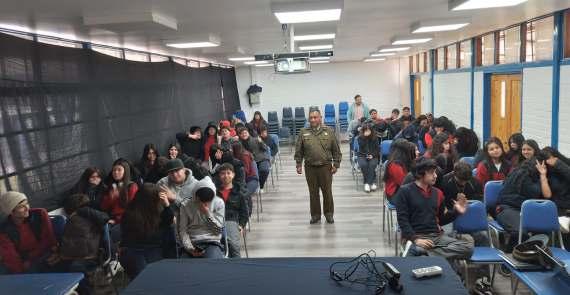 Carabineros realiza charla preven va a estudiantes del Liceo Bicentenario Hermanos Sotomayor Baeza.