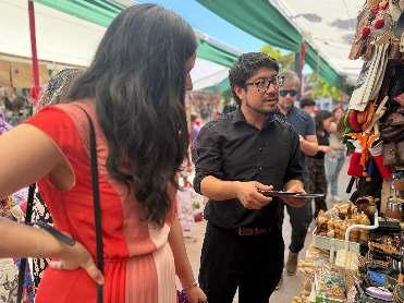 entrega recomendaciones en stand preven vo en plaza de Armas.
