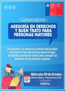 En el marco del Mes de las Personas Mayores,DelegaciónPresidencialProvincial de Melipilla, junto a SENAMAMetropolitana, organizaronunconversatoriogratuitotitulado “Asesoría en Derechos y Buen Trato para Personas Mayores”, el cual será dirigido por el abogado de SENAMA, Fernando Agüero, quien abordará temas relacionados con el buen trato, denuncias y asesoría legal, brindando además orientación sobre cómo proteger los derechos de las personas mayores.