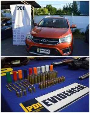 La diligencia permitió encontrar diversas armas de fuego, cartuchos balísticos, un automóvil y sustanciasilícitasavaluadasenmásde4millonesdepesos,informarondesdelaPDI.