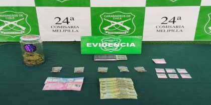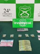 inmediato un equipo de motoristas se dirigió a lugar y procedió a entrevistar al individuo, al que se le efectuó un controldeiden dadinves ga vo. Entresusves mentasmanteníabolsas co nte n e d o ra s d e m a r i h u a n a dosificada y bolsas contenedoras de tussi,razónporlacualJ.S.U de27años y con domicilio en Melipilla, fue detenido y quedó a disposición de la jus cia por el delito de microtráfico de drogas.