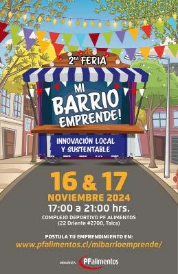“Este año Mi Barrio Emprende será más grande. Queremos que este sea un espacio de encuentro para los emprendedores de la Región del Maule y que los ayude a visibilizar y potenciar sus ideas, además de ampliar sus redes de contacto. También para los asistentes este será un espacio familiar y entretenido, donde podrán pasar un grato momento durante el fin de semana con shows en vivo, gastronomía y muchos stands”, cuenta María Ignacia Mediavilla, jefa de Sostenibilidad y Relacionamiento Comunitario de PF Alimentos.