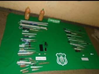 Este grupo especializado logró allanar a un total de 165 privados de libertad del Centro de Cumplimiento Penitenciario (CCP) de Cauquenes, de los módulos 4 y 3. Lo que dio como resultado la importante incautación de : 38 armas corto punzantes, 2 aparatos telefónicos, 1 cargador de celular, 1 cable usb, 1 sierra metálica, 6 litros de chicha, 2 envoltorios con sustancia de origen vegetal que fueron sometidas a las pruebas de campo narcotest.