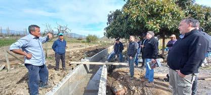 de riego de INDAP Rodrigo Garrido, se trasladaron más tarde a la comuna de Rauco, donde inspeccionaron la construcción del revestimiento de canal Trapiche La Higuera etapa 3. Este proyecto consiste en la construcción del revestimiento de una longitud de 240 metros de canal, beneficiando a un total de 18 pequeños productores. José Alejandro Rojas, representante de los regantes destacó que el trabajo realizado ha sido crucial para evitar la pérdida de agua, y asegurar un suministro más eficiente a las propiedades cercanas, mejorando el riego en diversos cultivos. “Ahora con este trabajo, no se pierde nada y va a llegar al fondo de las propiedades con más cantidad de agua”.