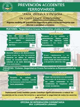 herramientas de seguridad a la ciudadanía y evitar accidentes los cruces ferroviarios; En este sentido, la patrulla comunitaria de nuestra unidad policial se ha enmarcado en una labor de autocuidado para reforzar el llamado a conservar los cuidados necesarios; destacando no bloquear los cruces ferroviarios y respetar las señaléticas, sobre todo el ‘Pare’ para permitir la libre operación de la labor ferroviaria; tanto de carga como como de transporte de pasajeros; siempre mirar a ambos lados antes de cruzar, y que no venga el tren