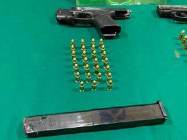 S.I.H.S de 21 años incautando una pistola Glock modelo 19 , sin nro de serie con 2 cargadores , 1 con 27 cartuchos 9 mm y el otro con 17 cartuchos 9 mm y, un individuo se iniciales V.A.S.S de 16 años, quien mantenía una pistola automática , marca PT809 con nro de serie borrada , con 1 cargador con 8 cartuchos calibre 9mm sin percutar, la que también fue incautada. Se hace presente que en el sitio del suceso se encontraron 13 cartuchos calibre 9 mm percutados, los que se fijaron y, levantaron como evidencia . Fiscalía de flagrancia , dispuso diligencias por parte de equipo Labocar para periciar los armamentos de fuego . Por su parte, ambos indi-