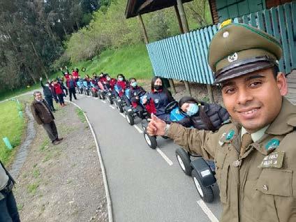 Con el propósito de recono cer el compromiso otorgado por los niños que son “Briga distas Escolares” de la Escue la José Miguel Carrera del sector de Vaquería, es que los Carabineros del Retén Santa de Lobos dependiente de la 5ta. Comisaría de San Javier, en este caso liderados por el Cabo.2do Nicolás Palma acompañado por el docente a cargo de las brigadas escolares de este establecimiento educa cional Eduardo Arellano, reali zaron las gestiones necesarias para visitar junto a los niños que son parte de ello, la Escue la de Transito “Casa Chueca” ubicada en la ciudad de Talca. Actividad que se llevó a cabo durante la jornada de este martes recién pasado en don de 16 niños de 4to a 8vo bási co, entusiasmado y llenos de alegría emprendieron la aven tura a la Capital Regional del Maule; Al llegar los esperaba el jefe de la agrupación Trekking Chile y el encargado del com plejo Casa Chueca, quienes fueron los guías de este suceso tan esperada por cada uno de los alumnos.