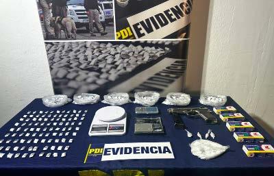 orden judicial de entrada y registro a un domicilio, incautando cocaína base, clorhidrato de cocaína, MDMA, clonazepam y lorzepam, además una pistola a fogueo, dinero en efectivo y elementos de dosificación. En el procedimiento resultaron detenidos un hombre y una mujer, resaltando el primero apercibido por el Artículo 26 del Código Procesal Penal esperando ser citado por la Fiscalía, mientras que la segunda imputada en prisión preventiva.