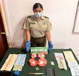 funcionarios policiales oculta una bolsa, la que contenía pasta base de cocaína, ademas se le incautó 747 mil pesos en efectivo. Ambos sujetos tenían antecedentes policiales anteriores.