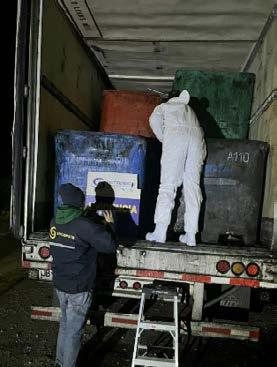 bineros. Se logró detectar esta gran carga de jibia que tenía como destino la región del Biobío y la cual no cumplió con la acreditación de origen legal, lo que constituye un incumplimiento de la normativa vigente, por ende, se procedió a la incautación y retiro del recurso como también del medio de transporte