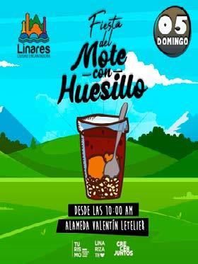 Nos vemos este domingo 05 de febrero a partir de las 10:00 hrs y hasta la media noche, en la VI versión de la Fiesta del Mote con Huesillo Linares 2023. Ven a disfrutar de este brebaje chileno en un evento que reúne más de 20 stand de comida típica, juegos, concursos y lo mejor del folclor local.