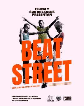En la búsqueda de instancias para dar a conocer la historia del break dance, el responsable del Festival Sur Breakers, Ramón Cornejo, ha invitado al Festival Felina de Cine Nacional e Internacional para organizar una actividad de manera conjunta. Se trata de una función de cine en donde se exhibirá la icónica película “Beat Street” de 1984. Este largometraje, que se presentará este jueves 09 a las 19:30 en el Teatro Municipal, aborda el nacimiento de la cultura del hip hop contando con la participación de músicos de la época. No se trata de una película conocida ni recordada por el grán público del cine de los 80’s, sin embargo hoy es considerada de culto por su importancia histórica.