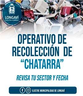 Desde el día lunes 22 de mayo hasta el día lunes 16 de junio, se realizarán los operativos de retiros de chatarras, para ello el Deparatmento de Servicios Generales entregó las fechas y lugares donde podrán ir a dejar sus artefactos que ya no ocupan. La primera jornada se realizará en el sector de La Quinta Sur, en la sede vecinal “Nueva Unión”, el día lunes 22 de mayo, luego se trasladarán hasta el sector de La Quinta Norte, el día lunes 29 de mayo, específicamente en la cancha de futbol del club San Francisco; posteriormente