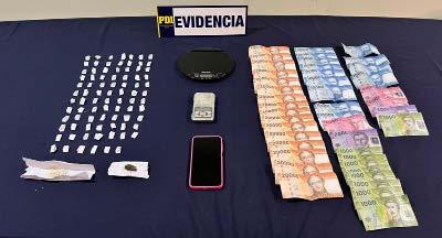 En el procedimiento, se incautaron 84 dosis de cocaína base, 1,04 gramos de cannabis, la suma de 478 mil pesos en efectivo, un teléfono celular y diversos elementos utilizados para la dosificación de droga.