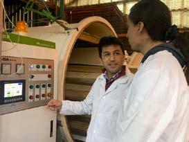 El investigador Víctor Sepúlveda, sostiene que el sanitizado de madera se realiza con alta frecuencia, la misma que transmiten emisoras de radios internacionales. “En este sentido, para ilustrar lo que realiza esta innovación, cabe consignar que es similar al funcionamiento del calentamiento de alimentos desarrollado por un horno microondas, cuyas ondas electromagnéticas de alta frecuencia, presentan además una mayor longitud de onda”.