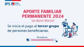 disponible en el Estado, tras lo cual se generan las nóminas de pago. Para este año 2024, el monto del Aporte Familiar Permanente es de $61.793 por carga familiar o familia, según el tipo de beneficiario. Por ejemplo, un grupo familiar con tres hijos acreditados como cargas familiares, tendrá derecho a 3 aportes familiares (uno por cada carga familiar) y recibirá un monto total de $185.379.