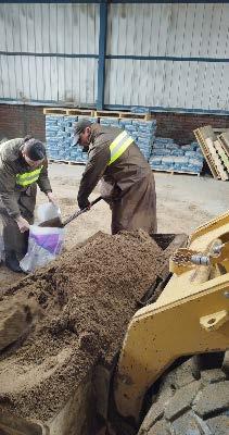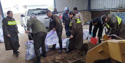 vecinos en el llenado de sacos de arena; los cuales serán utilizados para evitar que el agua continúe ingresando a los domicilios