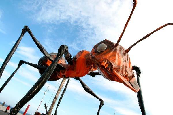 La invitación es que las familias participen de este espectáculo callejero que pretende invertir la realidad, donde un insecto será diez veces más grande que el humano.
