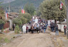 La posterior procesión de la virgen campesina por el pueblo fue acompaña por cientos de personas y resguardados por más de 450 huasos a caballo que la resguardaron en todo momento. “Esto es muy lindo y ojalá se sigan man teniendo estas tradiciones, nosotros en mi familia cui damos todo el año nues tros animales, para que mi marido y mi nieto vengan a esta procesión”, dijo Adeli na Acevedo.
