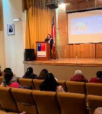 Al interior de la multicancha de la escuela Lorenzo Varóli, se reunió la Directora Na cional del Servicio Nacional de la Mujer y la Equidad de Género, Priscilla Carrasco Pizarro, para dialogar y es cuchar a los niños y niñas y apoderadas del programa “4