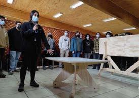 Agregó que “para nosotros la madera es muy impor tante, estamos en una zona maderera, nuestro colegio tiene relación con ello, es un material importan te, económico y utilizable para diferentes instancias”. Ahora los futuros arquitec tos trabajarán en aplicar las observaciones que entregó la comunidad estudiantil a los diseños, para futuro generar un catálogo que quedará disponible para aquellos emprendedores que se dedican a trabajar con madera.