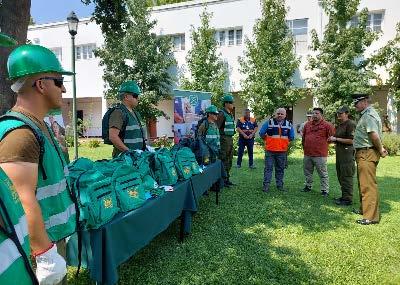 En este mismo contexto, el Delegado Presidencial Regional, Humberto Aqueveque y Servicio Nacional de Prevención y Respuesta ante Desastres (Senapred), entregaron a la máxima autoridad regional de la policía uniformada mochilas con elementos básicos de seguridad, los que serán destinados a los carabineros que hacen frente a los siniestros forestales.