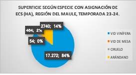 La especie con mayor asignación en el Maule es la vid vinífera, la que