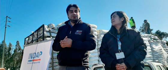 los catastros, y como parte del plan de reconstrucción y ayudas tempranas INDAP ya está entregando sacos de cubos de alfalfa para alimentación animal a sus