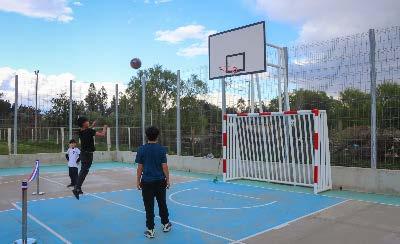 El proyecto contempló la construcción de una cancha de entretención sin medidas oficiales, permitiendo el normal desarrollo de dos disci -