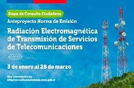 transmitir y recepcionar señales que permitan brindar servicio telefónico en todo el territorio nacional, es que el Ministerio del Medio Ambiente (MMA) comenzó a elaborar una norma de calidad ambiental o de emisión para regular las ondas electromagnéticas que son generadas por los equipos y redes de los servicios de telecomunicaciones.