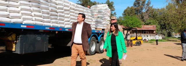 En la ocasión, llegaron has ta la unidad militar -recin to que es acopio de la car ga- tres camiones con urea. El delegado presidencial regional, Humberto Aque veque Díaz, junto a la se remi de Agricultura, Ana Muñoz, recibieron este cargamento de más de 3 mil sacos de fertilizantes que serán distribuidos en los próximos días.