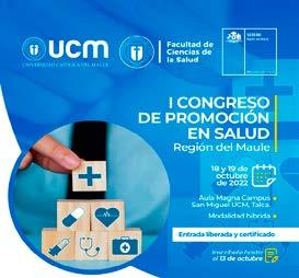 para la salud de la población. Con la intención de generar con ciencia y compartir conocimien to actualizado, la Seremi de Salud del Maule junto con la Facultad de Ciencias de la Salud (FACSA) de la Universidad Católica del Maule (UCM), se unieron en la realización del primer Congreso de Promoción de Salud que se realizará el 18 y 19 de octubre en el Aula Magna del Campus San