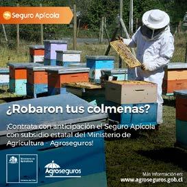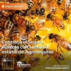 los productores apíco las a contratar a tiempo el Seguro Apícola con subsidio estatal que el Ministerio de Agricul tura dispone a través de Agroseguros, de manera de proteger sus apiarios frente a las pérdidas en producción de miel, ma terial vivo o núcleo y el material de la colmena, provocadas por la ocu rrencia de algún evento climático o de otra ín dole, lo que les permi tirá recuperar su inver sión, esfuerzo y trabajo en el caso de ocurrir un siniestro.