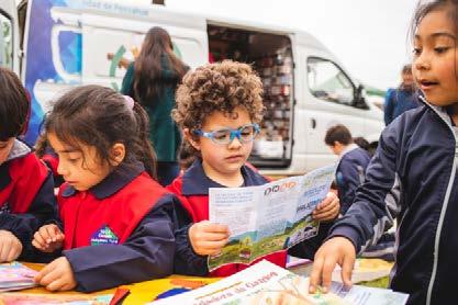 vicio que las bibliotecas móviles prestan en los dis tintos territorios del país. Continuó con la fiesta de los libros ofrecida por los distintos bibliomóviles de la región, en el patio Amé rica de la Villa Cultural para los 200 estudiantes y el cuerpo de profesores y directivos de la Escuela Rural Huilquilemu. Todos ellos pudieron disfrutar, además, de una muestra especial del museo itine rante de los pueblos ori ginarios perteneciente al gestor cultural Mauricio