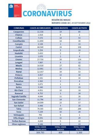 REPORTE EPIDEMIOLÓGICO COVID REGIÓN DEL MAULE 29-09-2022