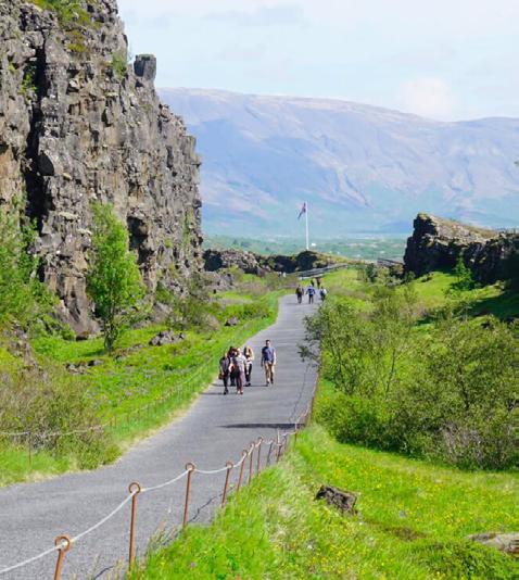 está o Thingvellir National Park, patrimônio Mundial da UNESCO. Na região eram realizadas grandes reuniões e decisões importantes para as comunidades nativas da época, os Althingi, que ocorrem desde 930. Afora isso, estão previstas paradas para contemplação de gêiseres, como o Geysir Strokkur, que jorra água a uma altura de 40 metros. No caminho para Selfoss, desponta a Cachoeira de Gullfoss. Com uma queda d’água de 32 metros, as águas que decaem sob o cânion de duas etapas provêm do segundo maior glacial do país, a geleira de Langjokull. Na Costa Sul há ainda a cachoeira de Seljalandsfoss, oriunda da geleira/vulcão Eyjafjallajökull e a praia de areias negras de Reynisfjara.