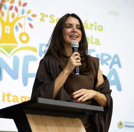 lestras com especialistas em educação e desenvolvimento infantil, além do lançamento do programa “Mãe Itaquá” e da posse da primeira-dama e presidente do Fundo Social de Solidariedade, Mila Prates Boigues Queiroz, como embaixadora da Primeira Infância na cidade. Durante o evento, o programa Mãe Itaquá foi lançado promovendo cuidado integral às gestantes do município (Leia mais nesta edição). A programação terminou na quinta-feira (28 de agosto) com rodas de conversa, debates