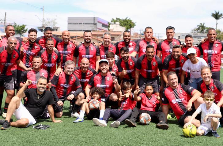 -prefeito Rogério Tarento, o secretário Fabiano Novais (Esporte e Lazer) e demais servidores e moradores da cidade participaram de uma partida contra a seleção de craques do passado..